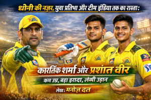 भारतीय क्रिकेट में बहुत कम लोग ऐसे हुए हैं जिनकी टैलेंट पहचानने की क्षमता पर लगभग सर्वसम्मति हो। महेंद्र सिंह धोनी उनमें सबसे ऊपर आते हैं। उनकी नज़र से टैलेंट छुपता नहीं है। चेन्नई सुपर किंग्स की स्काउटिंग प्रणाली सिर्फ नाम या सोशल मीडिया चर्चा पर नहीं, बल्कि ग्राउंड पर दिखने वाले असर, डेटा एनालिसिस और खिलाड़ी के टेम्परामेंट पर आधारित होती है। स्काउट्स जो रिपोर्ट देते हैं, उस पर भरोसा किया जाता है—और जब यह भरोसा सही निकलता है, तो उसका असर मैदान पर साफ दिखाई देता है। इसी सोच का परिणाम हैं कार्तिक शर्मा और प्रशांत वीर—दो अलग भूमिकाओं के खिलाड़ी, लेकिन एक ही दर्शन से चुने गए।