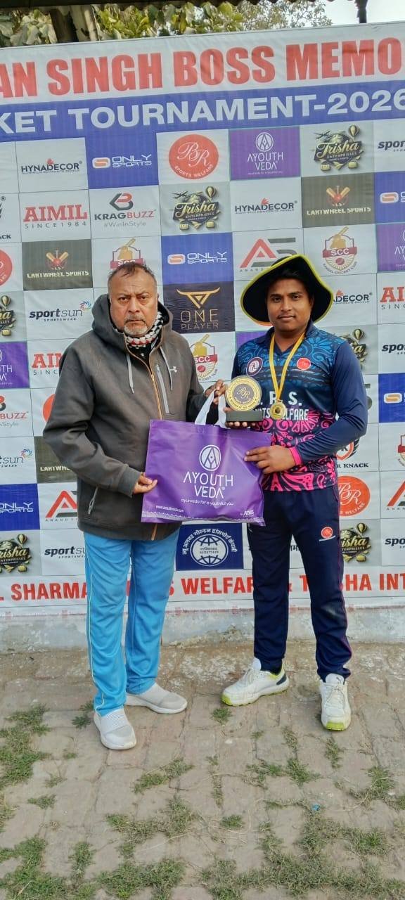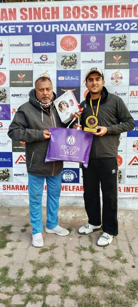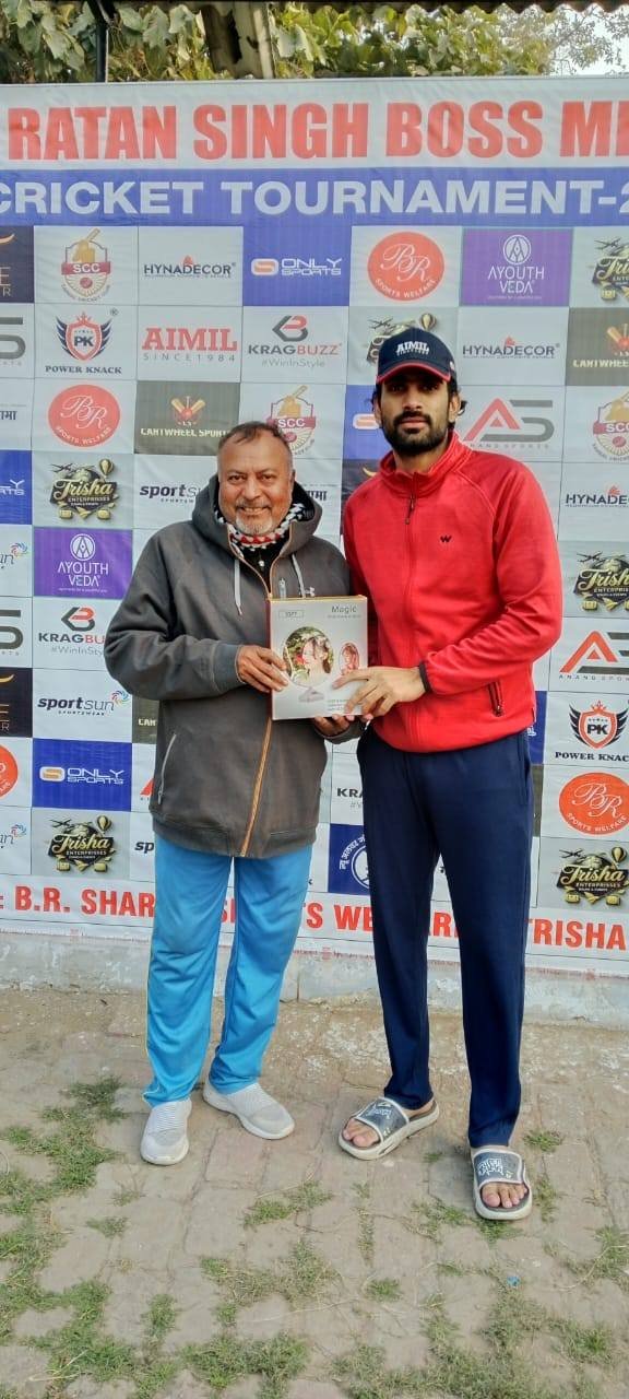 मैच के बाद मैन ऑफ द मैच का पुरस्कार भरत को टूर्नामेंट सेक्रेट्री एवं सीनियर अंपायर श्री कृष्ण कुमार द्वारा प्रदान किया गया।